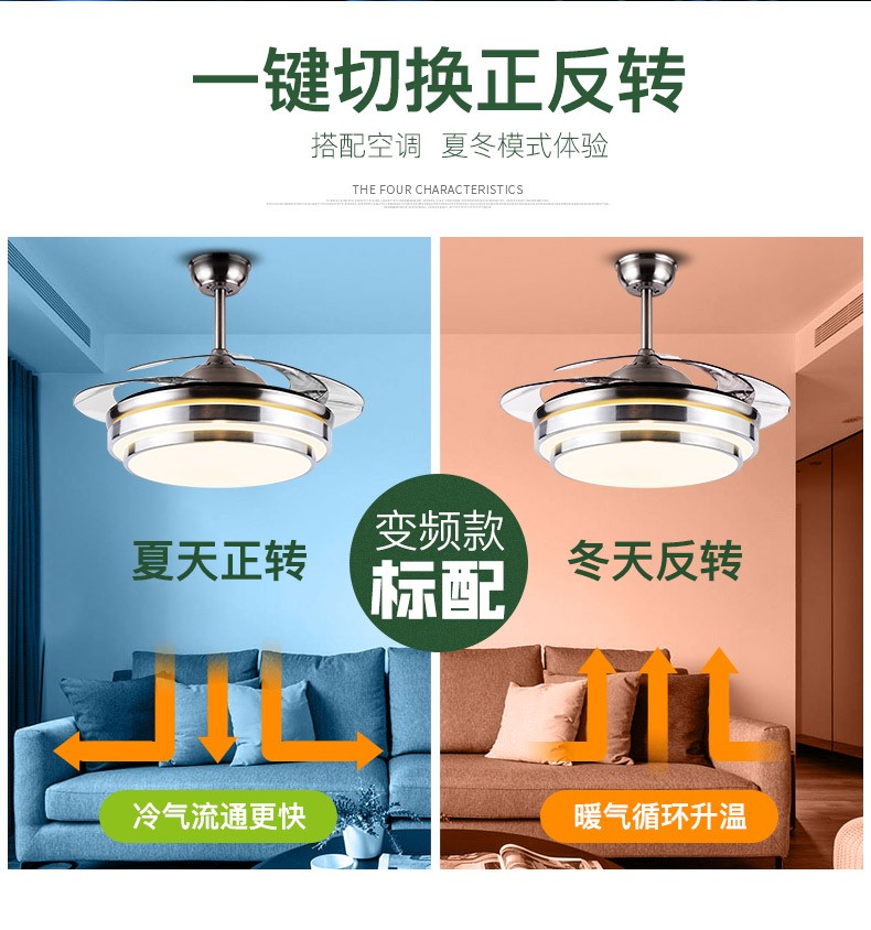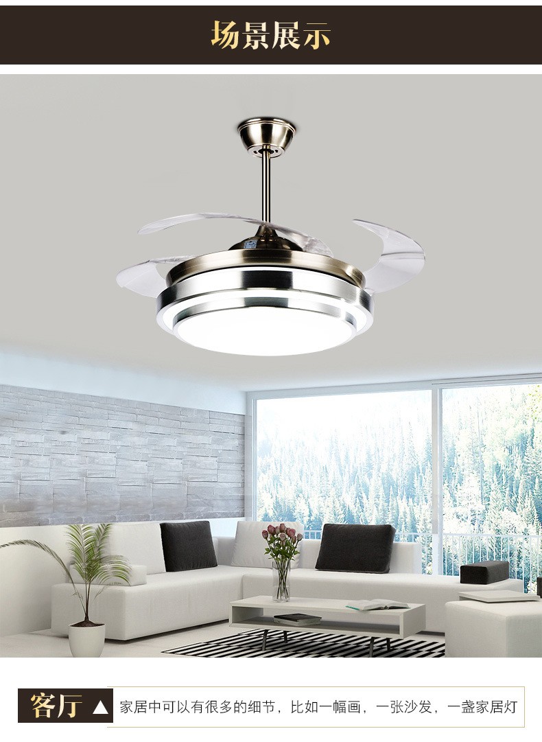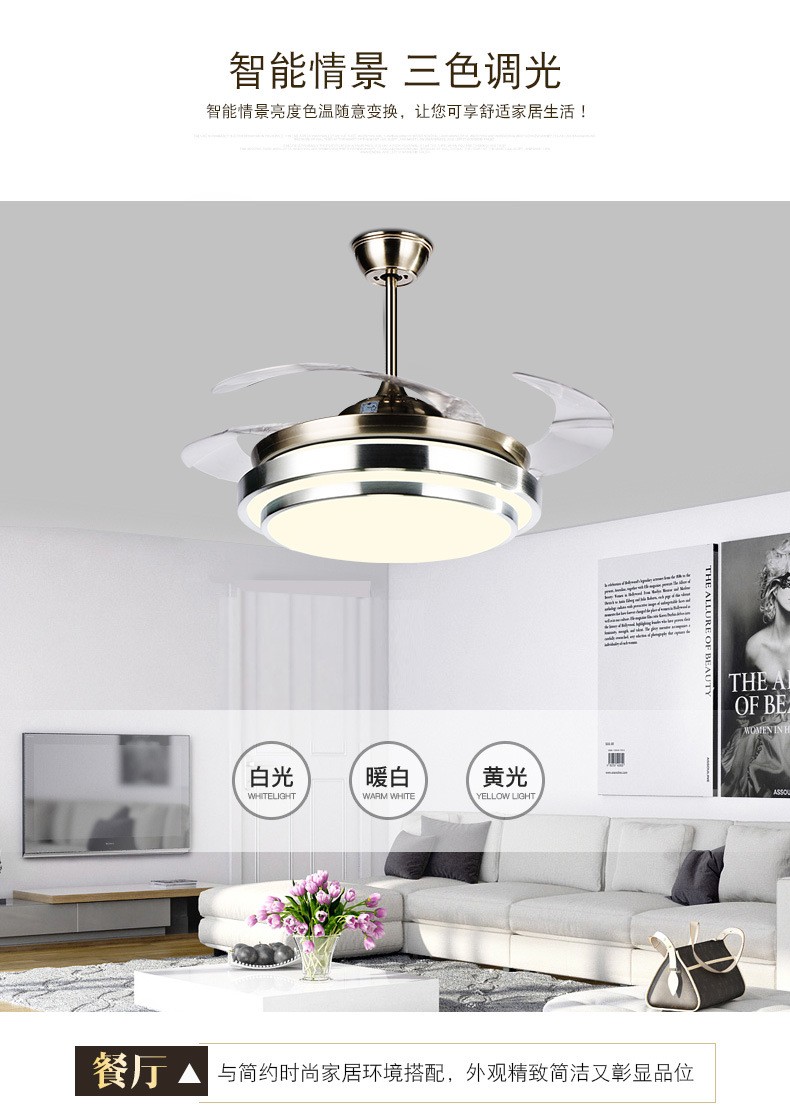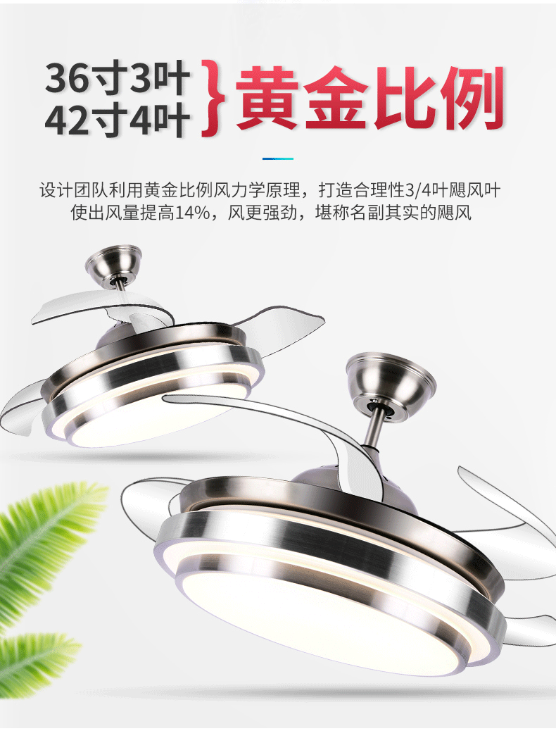 倔强大师直径42寸隐形风扇灯 36瓦*2 三色变光遥控器 颜色:洛色 功能:变频 材质:优质铁艺双铝材 自营