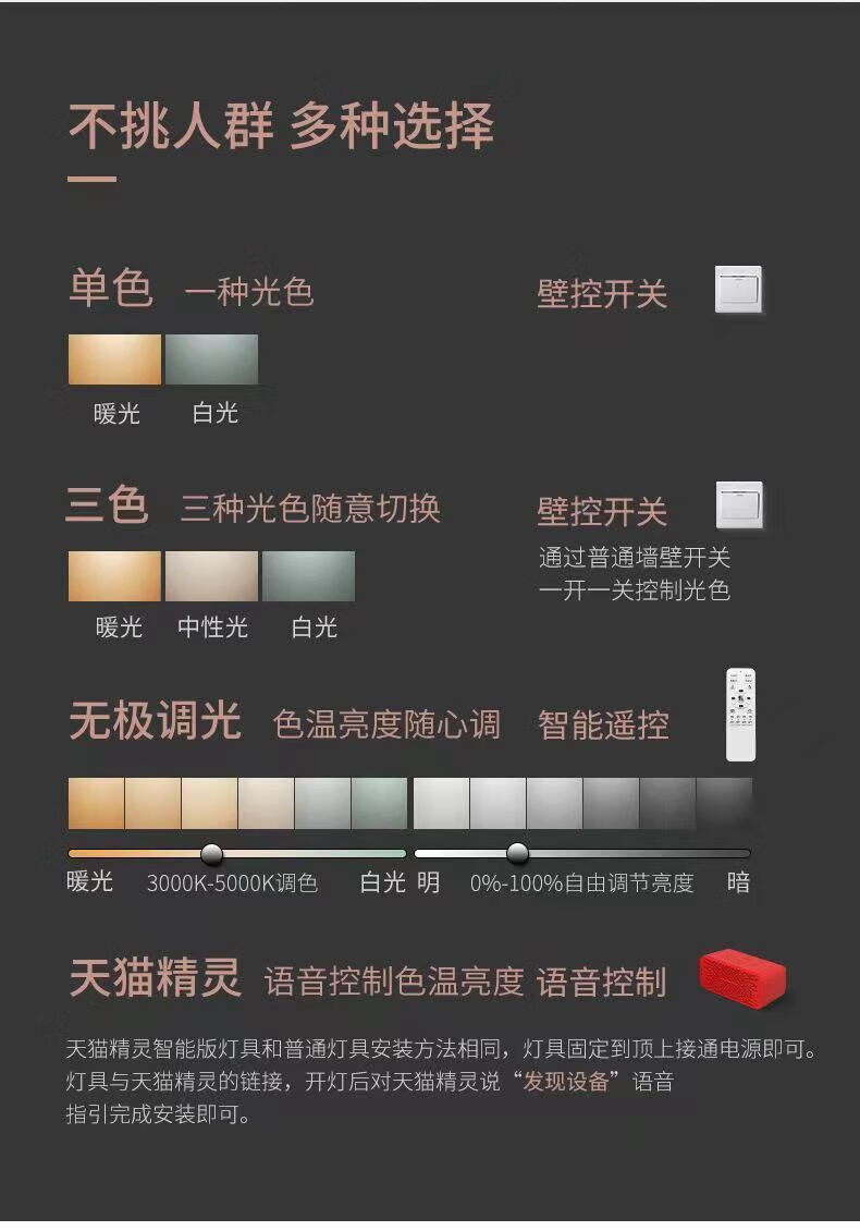 倔强大师JP-608圆形 三色变光吸顶灯 60瓦*2 颜色:黑色 尺寸:直径50*6 材质:优质铁艺+铝材+亚克力 自营