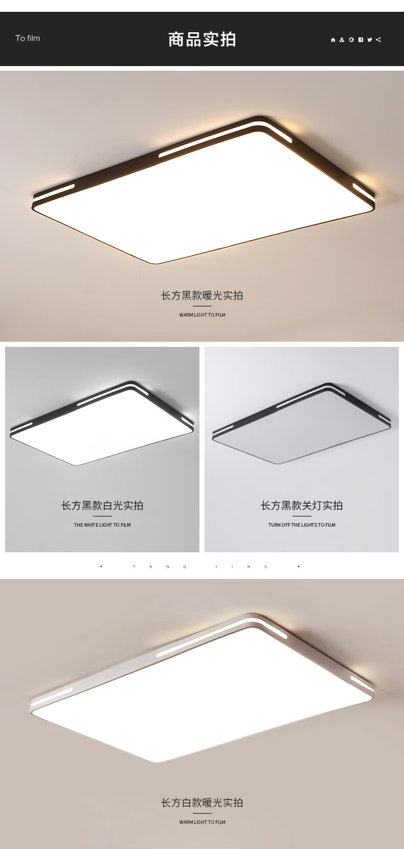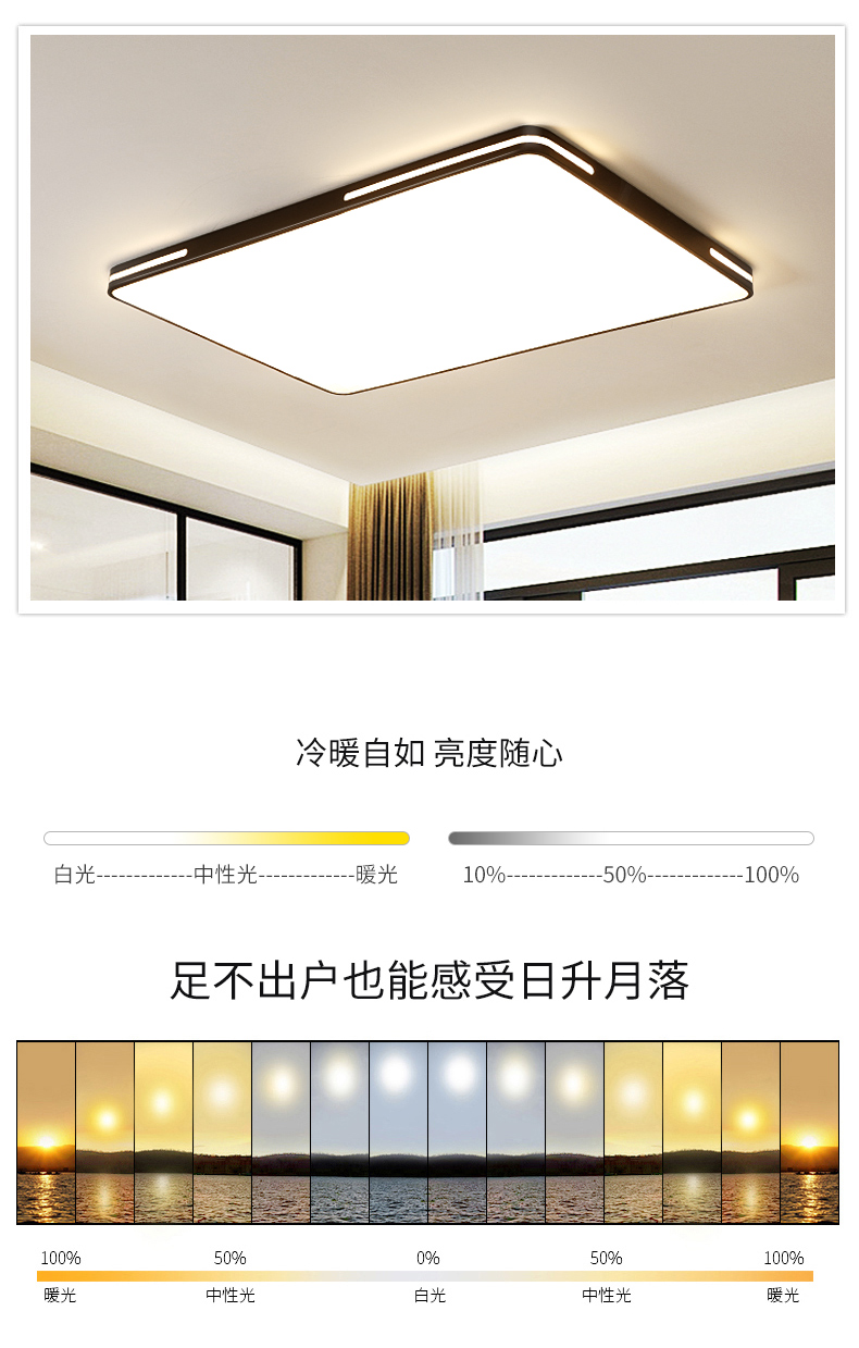 倔强大师JP-611长方形 三色变光吸顶灯 96瓦*2 颜色:黑色 尺寸:90*60*6cm 材质:优质铁艺+亚克力 自营