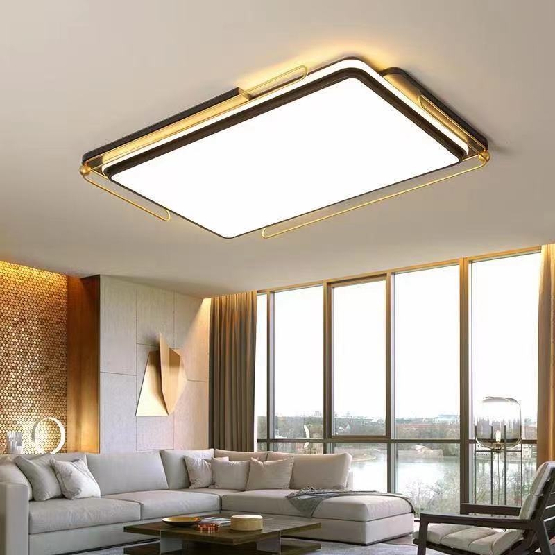 倔强大师JP-615长方形 三色变光吸顶灯 120瓦*2 颜色:黑+金 尺寸:110*70cm 材质:优质铁艺+亚克力 自营